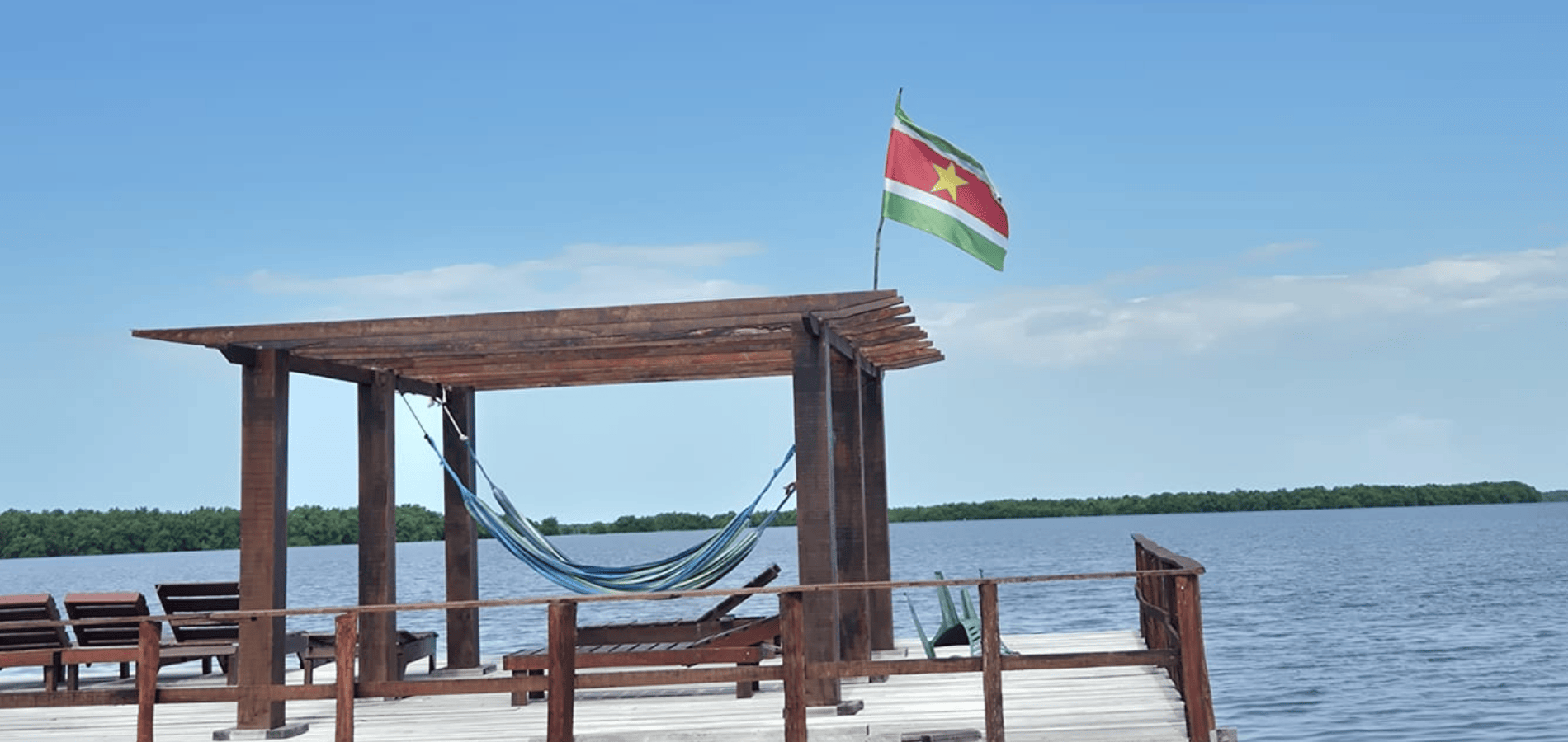 Bij de lodges aangekomen kon ik bijna niet geloven dat we echt op het water zouden slapen. De Surinaamse vlag wapperde ons vrolijk tegemoet. We werden ontvangen met een snackje en konden daarna kanoën en een modderbad nemen.